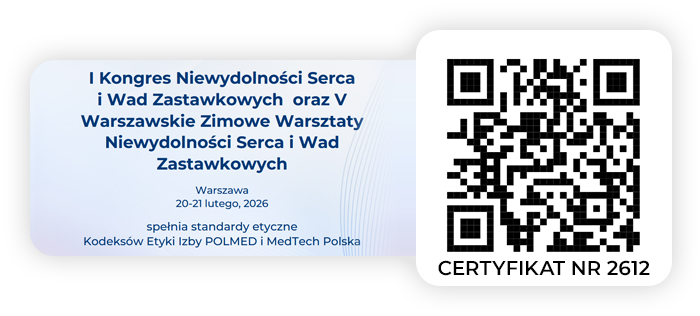 Serdecznie zapraszamy Państwa do udziału w I Kongresie Niewydolności Serca i Wad Zastawkowych, który odbędzie się 20-21 lutego 2026 roku w Warszawie, w Centrum Nauki Kopernik. Kongres będzie połączony z piątą edycją Warszawskich Zimowych Warsztatów Niewydolności Serca i Wad Zastawkowych.